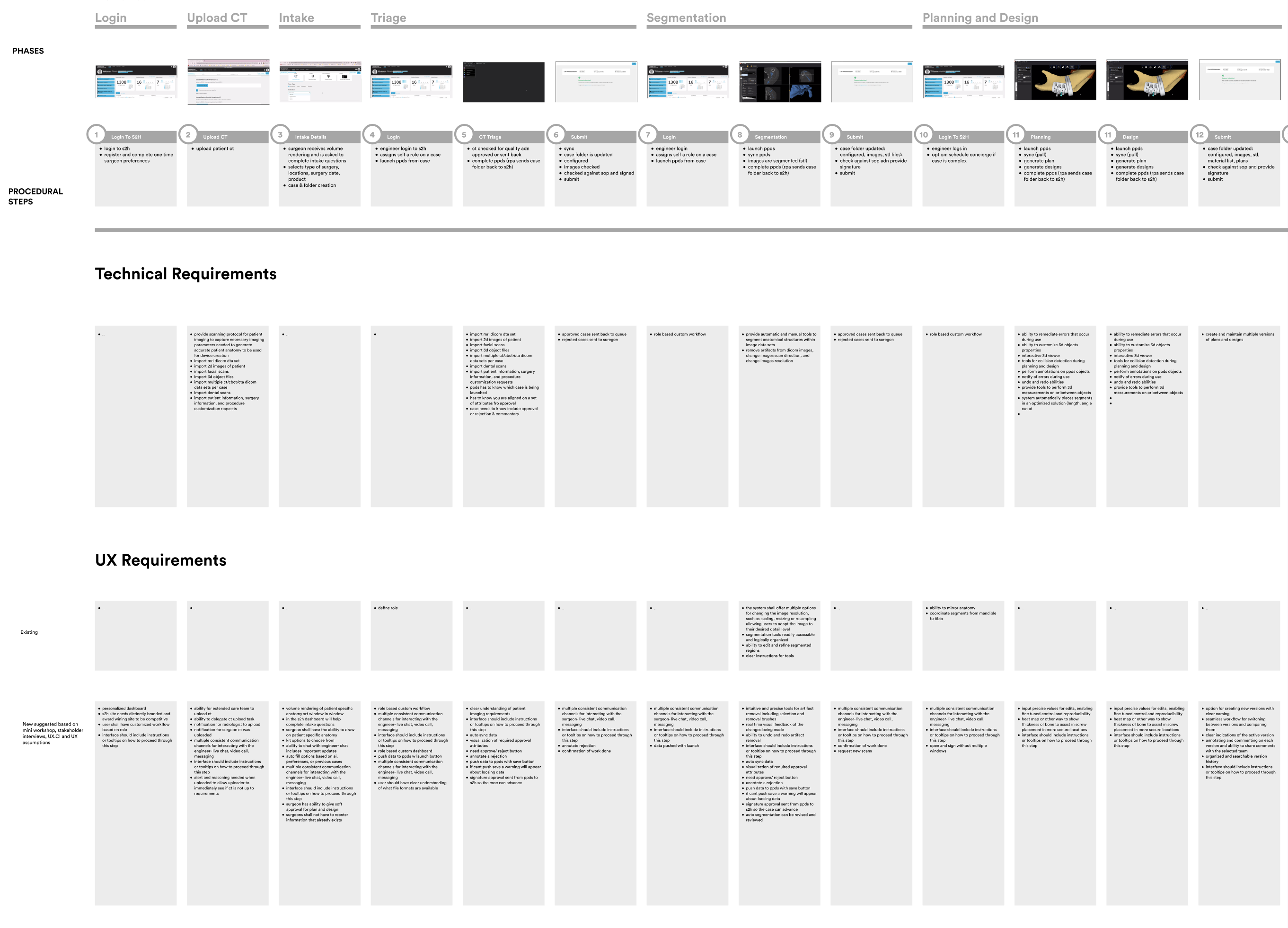 To understand the full surgeon workflow for completing a CMF (Craniomaxillofacial) case, we created a comprehensive journey map. This map highlighted the "moments that matter" most in the journey, helping us identify the critical points to focus on.