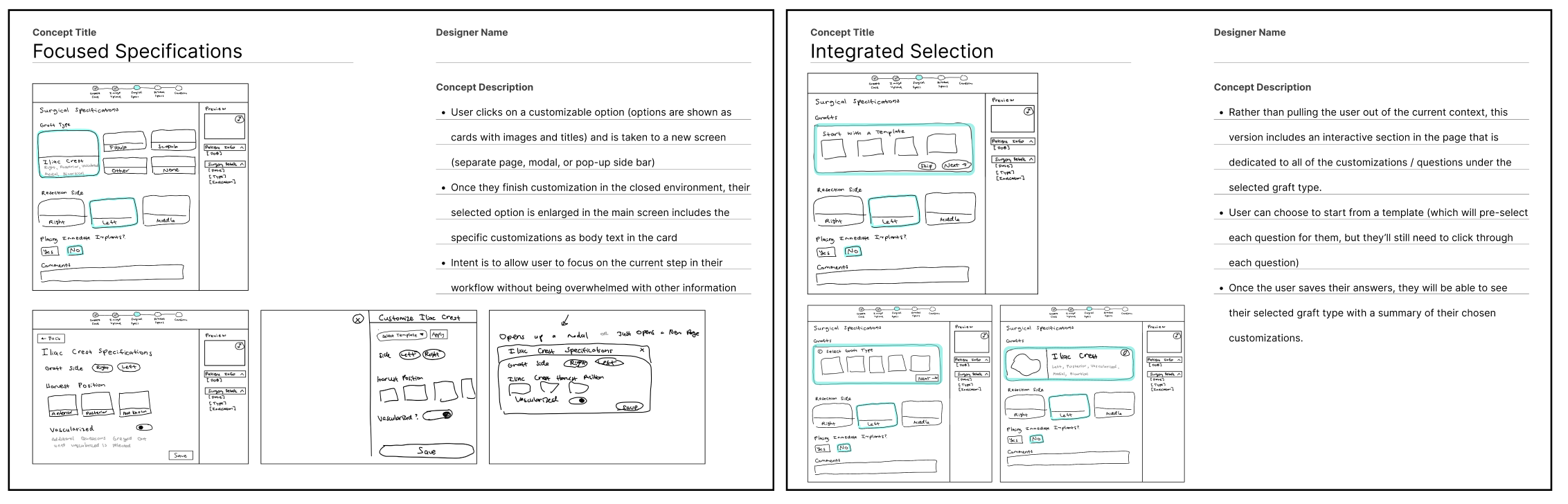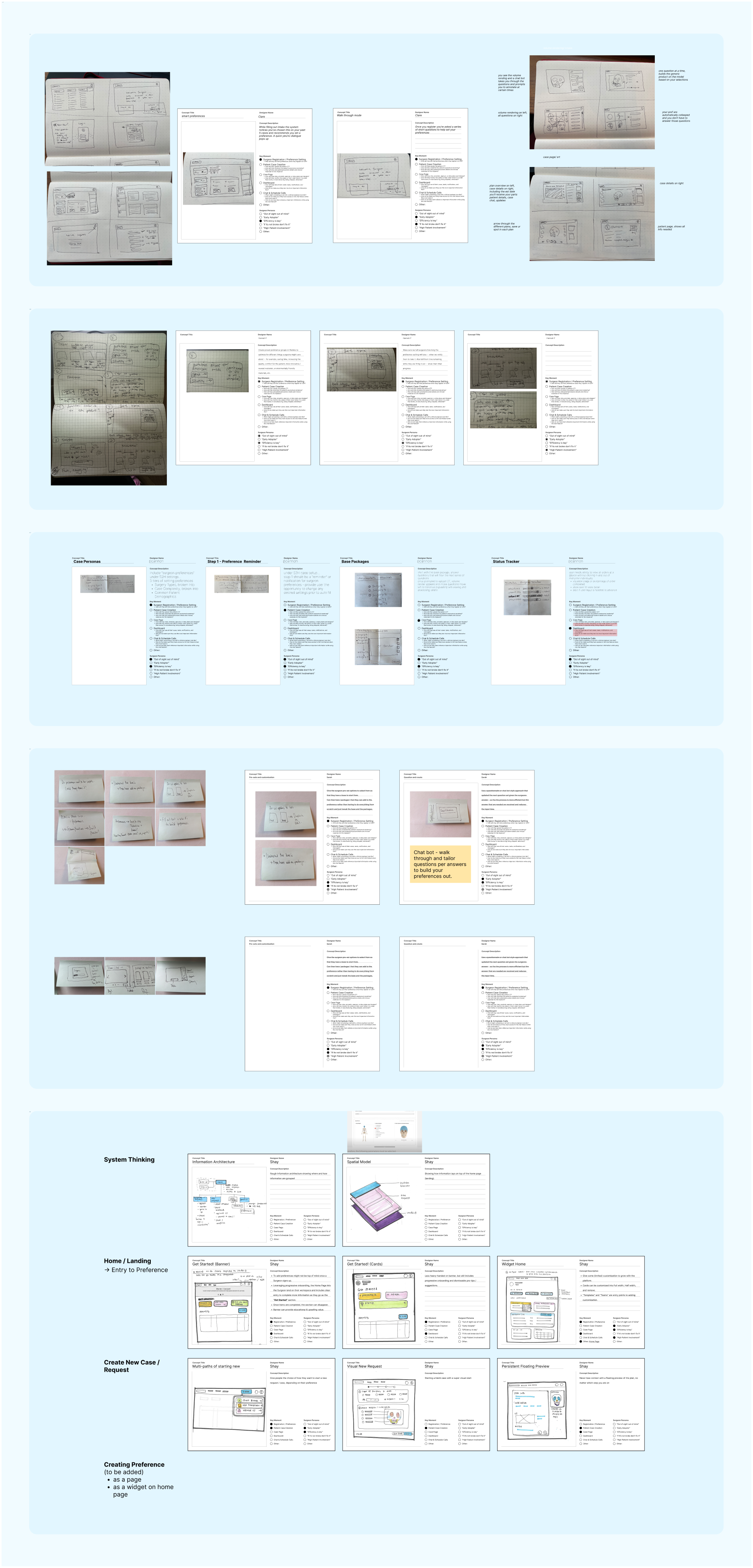 Once we had high fidelity screens, we engaged in participatory design sessions with a team of surgeon partners. This iterative process allowed us to refine designs, address concerns, and incorporate concepts for future enhancements. To ensure productive conversations and that the surgeons felt heard, I annotated screens with design rationale for presentations and documented feedback live during design sessions.