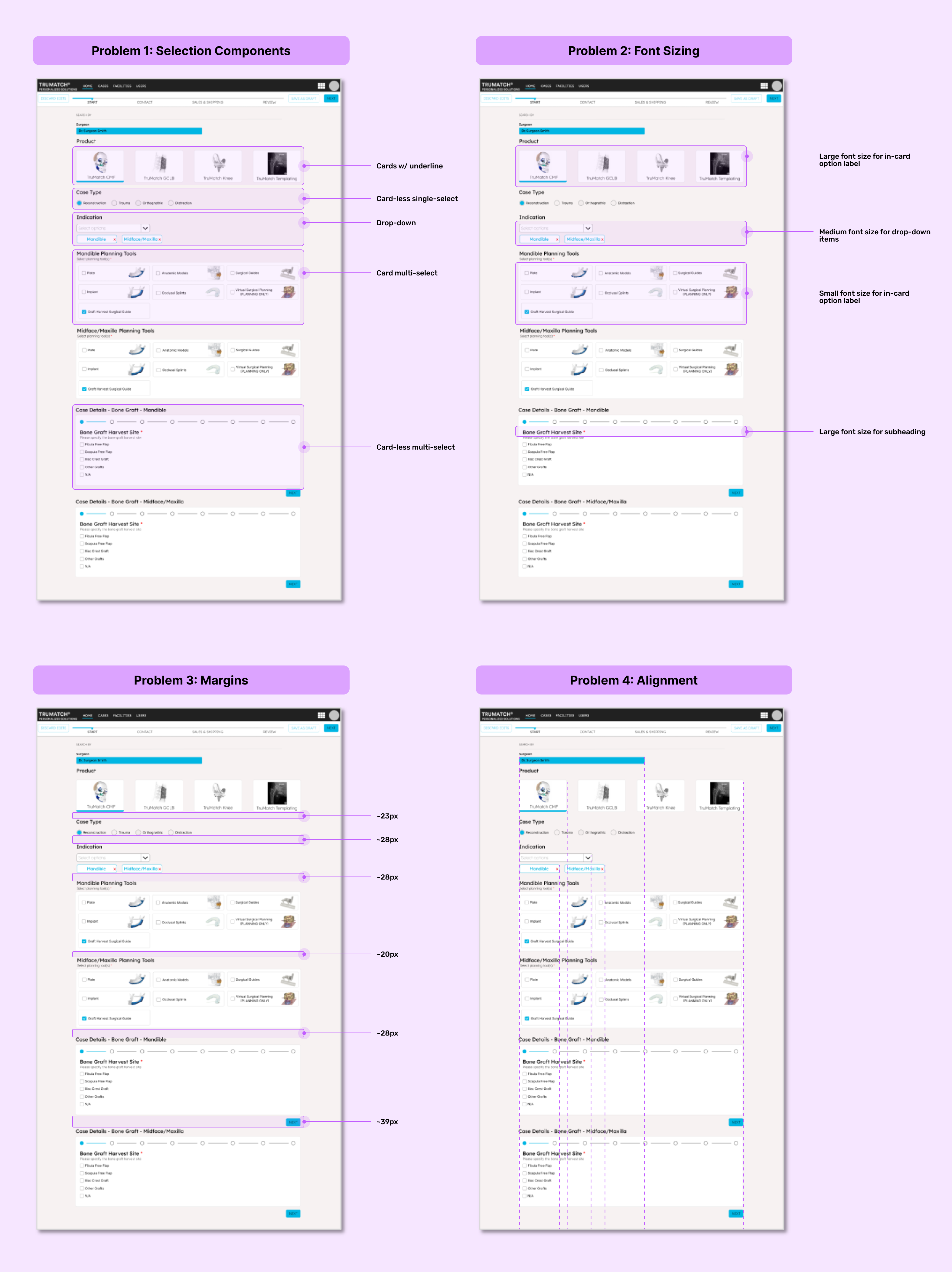 When I was introduced to the project, some features of the platform were already built but needed refinement in terms of elevating the user experience and visual design. My task was to redesign these existing features, introduce new ones, and ensure design consistency throughout the platform. This case study details the comprehensive UX design process, from exploring the problem space to implementing a robust design system for DePuy Synthes TRUMATCH Solutions.